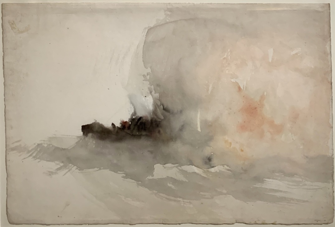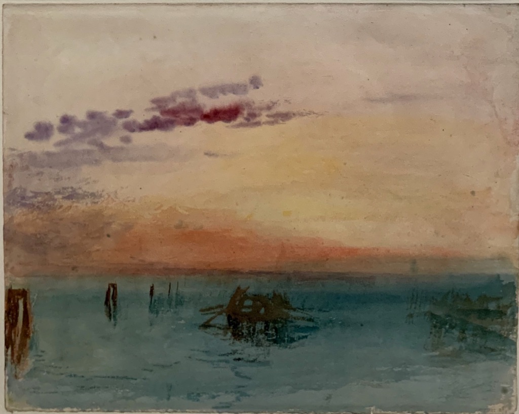 Nesta exposição, partimos para um mundo mais intimista de Turner. Com as aquarelas expostas, podemos observar os estudos e esboços onde suas novas criações se afloravam e tomavam forma, pois ali tudo era mais livre, era pintado para seu prazer próprio. E neste percurso observamos como o pintor vai deixando a pintura não figurativa se instaurar, os tons e a cores se voltarem para suas experiências mais radicais.