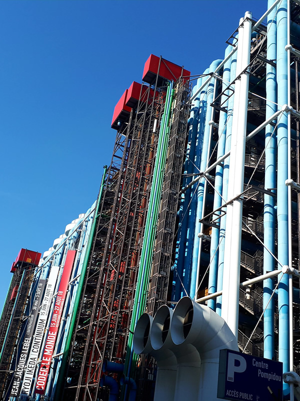 Concebido e projetado pelos arquitetos Renzo Piano e Richard Rogers, este excelente centro de cultura parisiense foi inaugurado em 1977. Revolucionário por revelar ao exterior suas estruturas internas e aquelas que suportam o peso da construção com um efeito colorido único, se tornou ícone da arquitetura urbana no século XX.