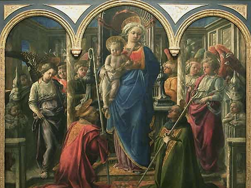 Evocando diversas cidades italianas e ateliês de mestres e artistas, apresentamos um conjunto de obras que nos permitem refletir sobre a invenção da perspectiva, o nascimento e o desenvolvimento do retrato, novas possibilidades de representar os temas religiosos, e o retorno ao mundo da antiguidade clássica que provocou o advento de um novo humanismo. Época fundada sobre um novo espírito científico de observação, a arte se torna mais naturalista e os artistas abandonam o espaço espiritual caro à Idade Média em benefício de um mundo tridimensional e de