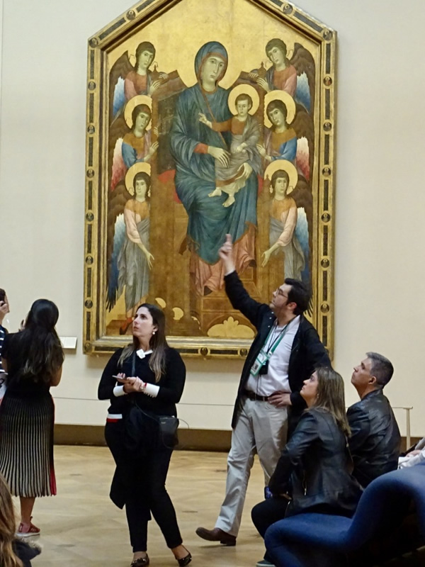 Ao longo da ala Denon do museu, o encontro marcado é com Giotto, Lippi, Botticelli, Mantegna, Messina, Da Vinci, Rafael, Veronese, Ticiano, Rosso, Pontormo entre outros mestres e gênios italianos que revolucionaram a arte, imprimindo formas e estilos que balizaram a criação artística até final do século XIX.